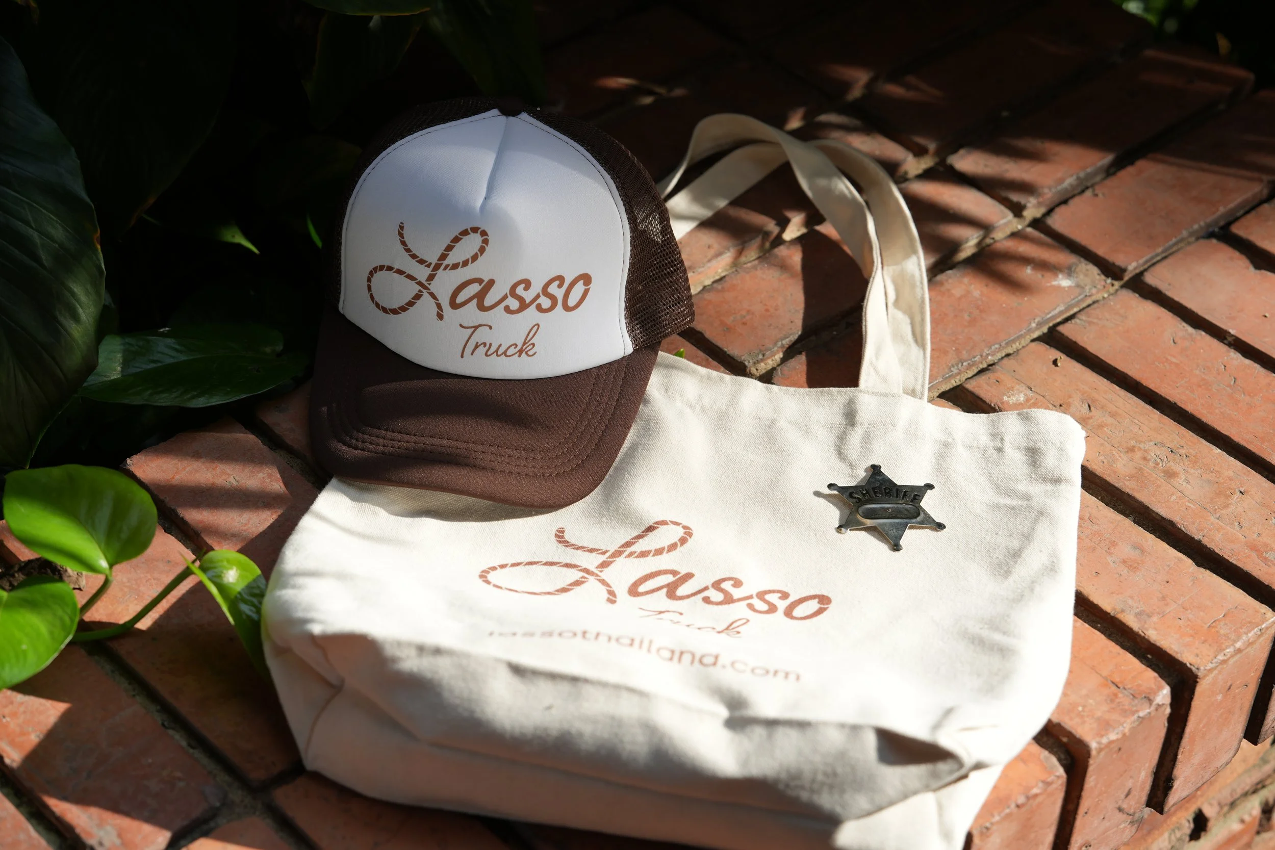Shop the collection Shop Lasso Tee Shirt - Bronco Brown or Texas Tan THB 300.00 Lasso Tote Bag THB 300.00 Lasso Trucker Hat THB 300.00 Lasso Insulated Tumbler THB 300.00 Charm Necklace THB 200.00 Boot n' Hat Earrings THB 200.00 Colorful Boot Earrings THB 100.00 Sheriff Pin THB 60.00 Lasso Charms THB 20.00